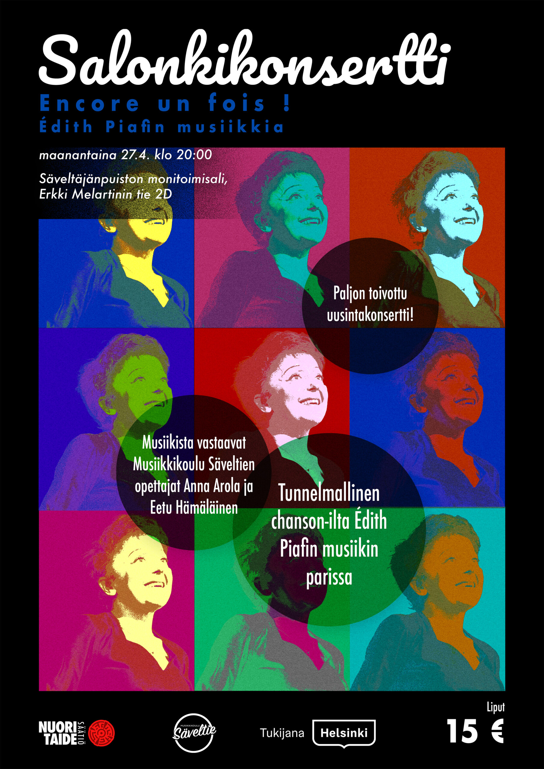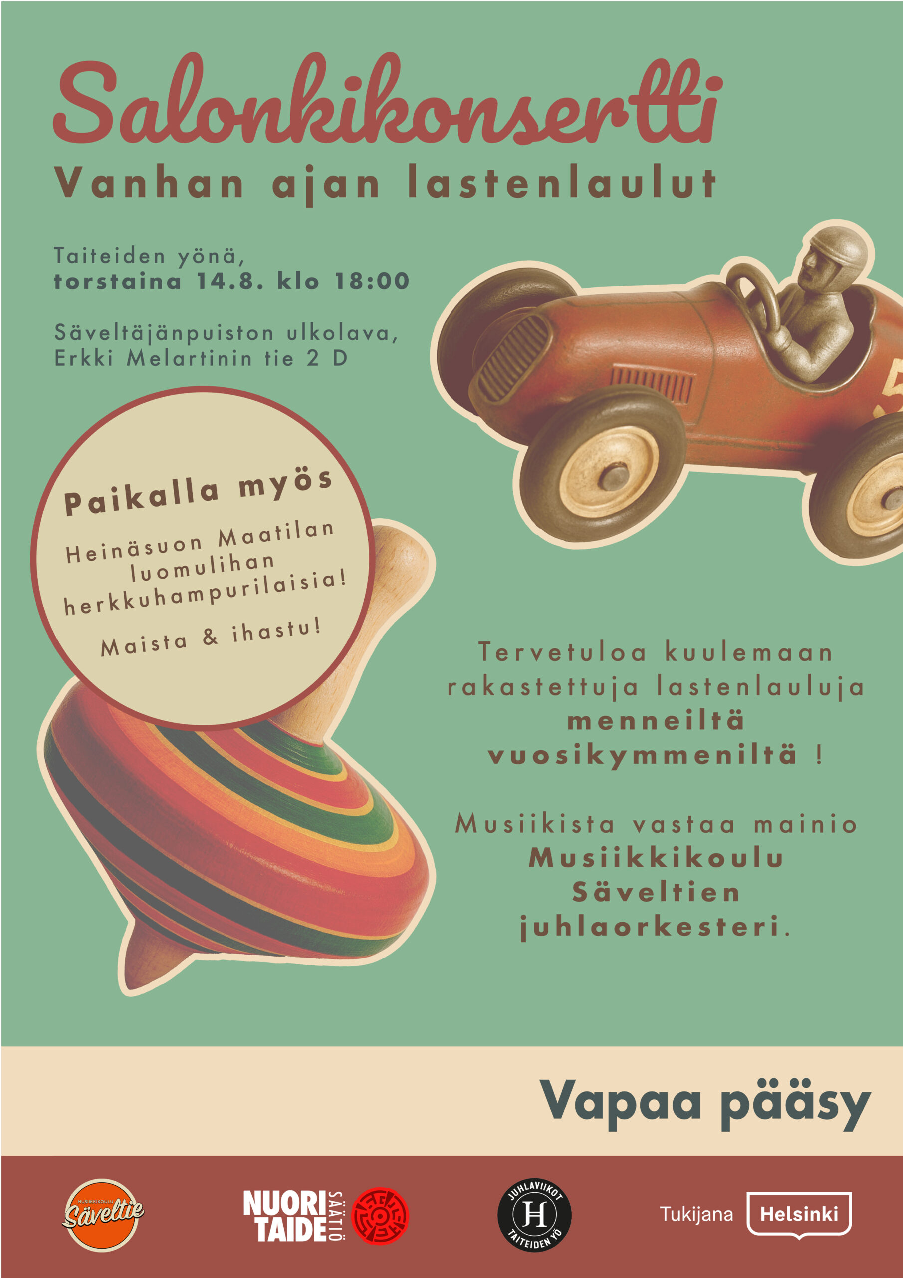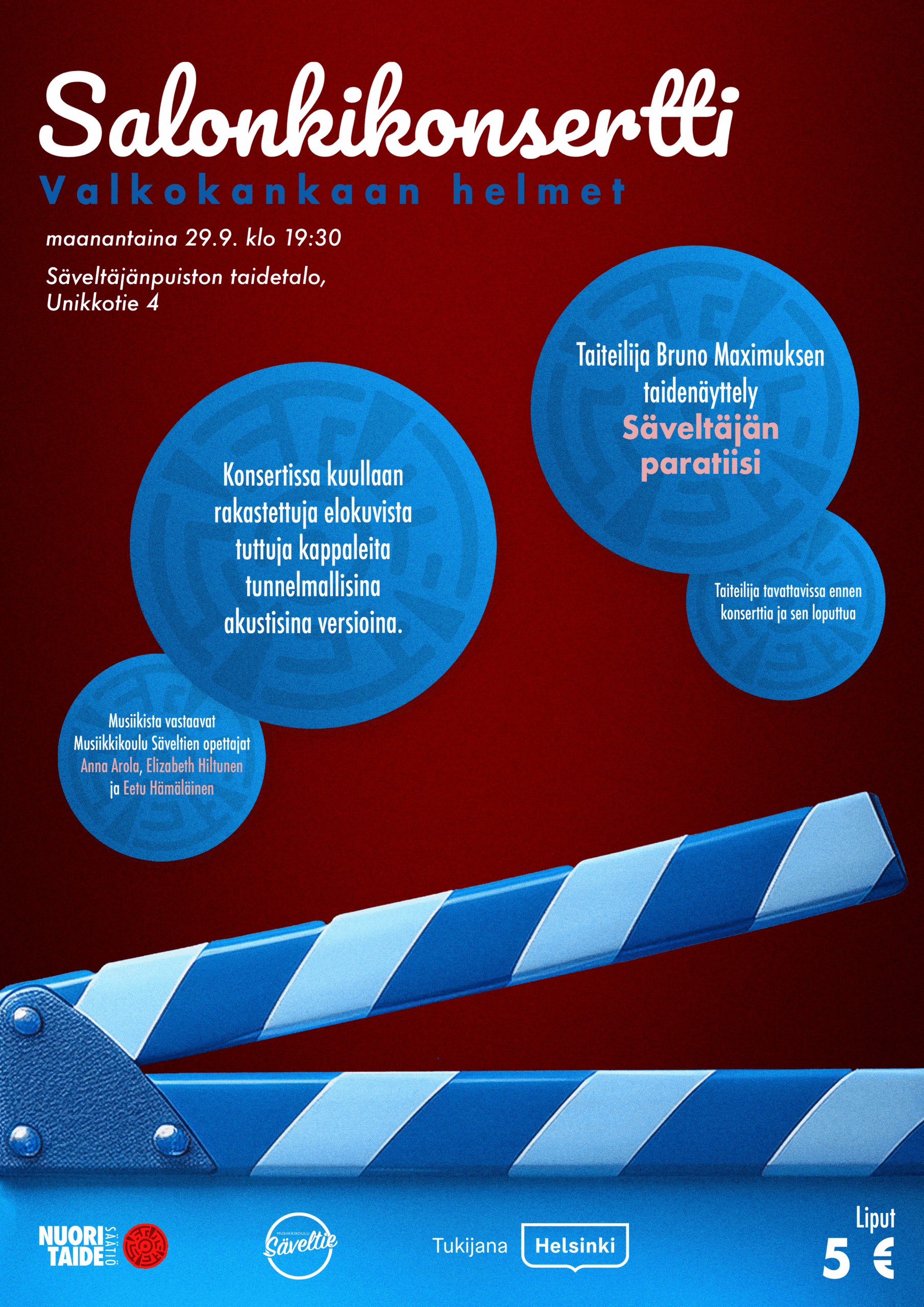 Salonkikonsertit tarjoavat intiimin ja tunnelmallisen konserttielämyksen, jossa musiikki tulee lähelle kuulijaa. Konserttipaikka, Säveltäjänpuiston taidetalon salonki kutsuu mukaan nauttimaan lämmintunnelmaisista konserteista sekä niiden yhteydessä järjestettävästä muusta toiminnasta, kuten taidenäyttelyistä ja runonlausunnasta. Kuukausittaisilla konserteilla on aina jokin erityinen teema, joka kantaa läpi konsertti-illan. Konsertteja järjestävät yhteistyössä Nuori Taide -säätiö ja Musiikkikoulu Säveltie.